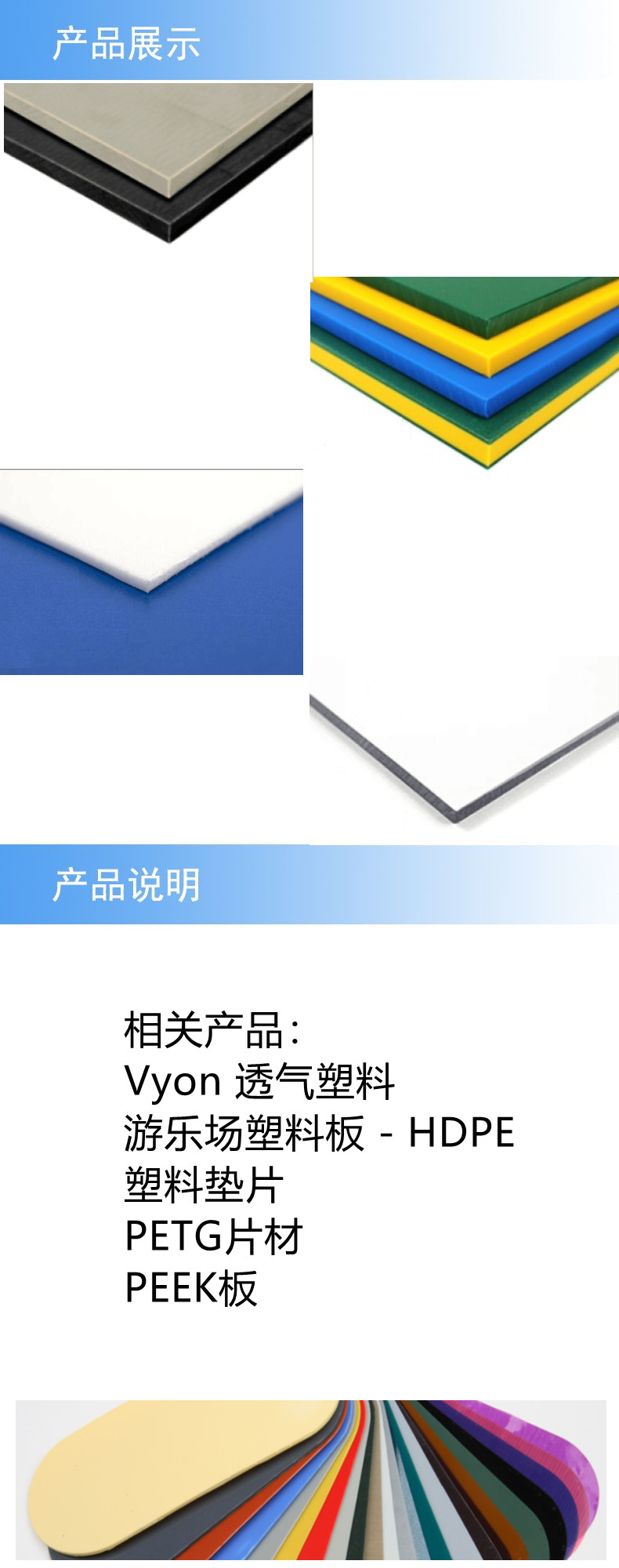 英国PAR透气塑料板Vyon相关产品:Vyon 透气塑料、游乐场塑料板 - HDPE、塑料垫片、PETG片材、PEEK板等。