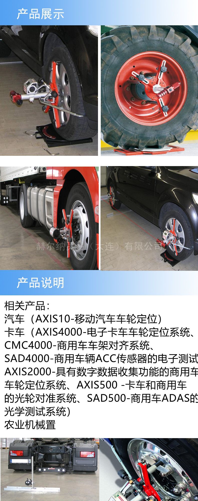 德国HAWEKA四轮定位 CMC4000商用车车架对齐系统相关产品:汽车(AXIS10-移动汽车车轮定位)、卡车(AXIS4000-电子卡车车轮定位系统、CMC4000-商用车车架对齐系统、SAD4000-我们用于商用车辆 ACC 传感器的电子测试系统、AXIS2000-具有数字数据收集功能的商用车车轮定位系统、AXIS500 -用于卡车和商用车的光轮对 准系统、SAD500-我们用于商用车ADAS 的光学测试系统)、农业机械(AXIS50 LM-优化平稳运行的农业解决方案、RPV1300-同心测试系统)