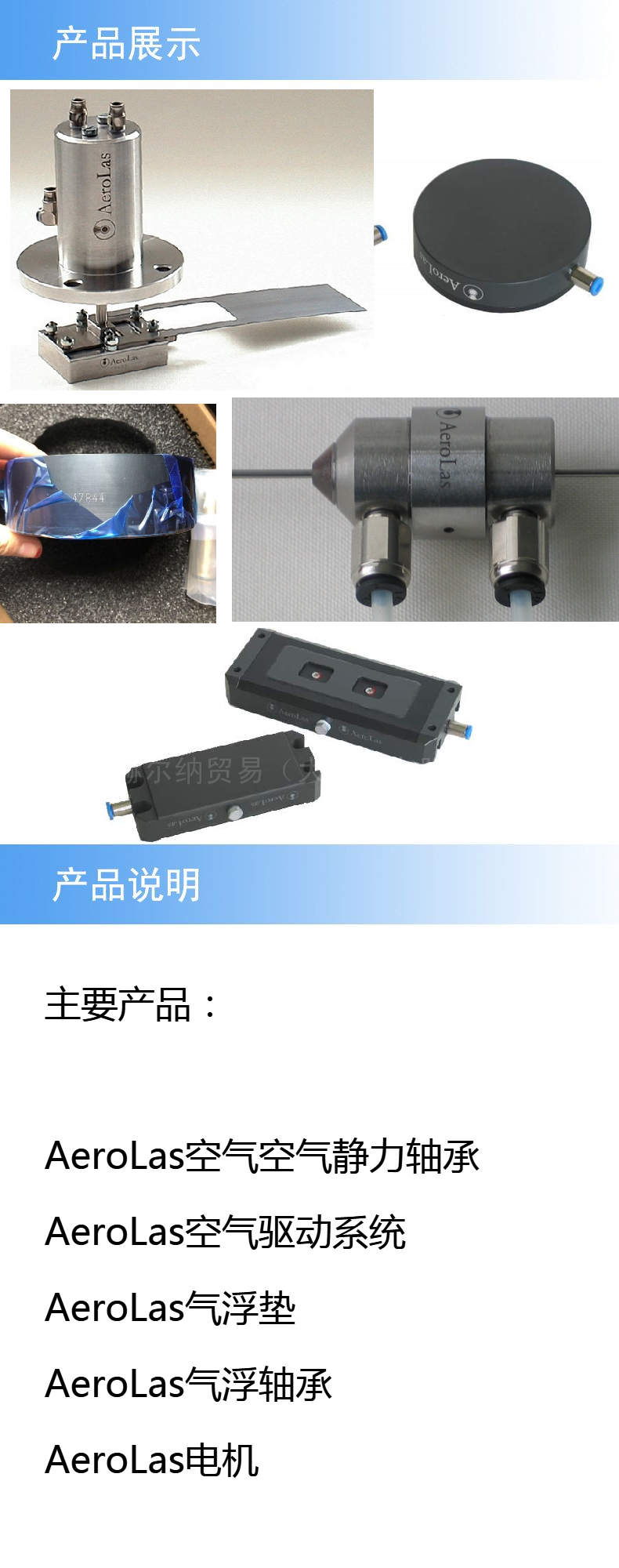 德国AeroLas空气空气静力轴承、AeroLas空气驱动系统、AeroLas气浮垫 、AeroLas气浮轴承、AeroLas电机等。